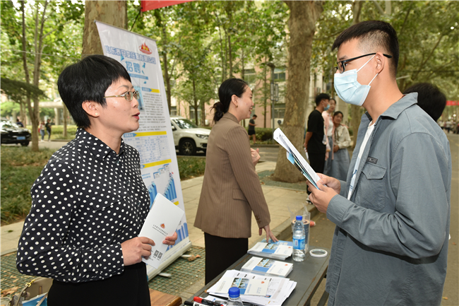 原次聘请举动正在北北校区共时举行,用人单元经由过程散发宣扬册、扫描两维码等多种体例背同砚们细致引见公司概略、企业文明、利益报酬、人材需要等基础环境。相干教院卖力人也到会取用人单元停止洽商交