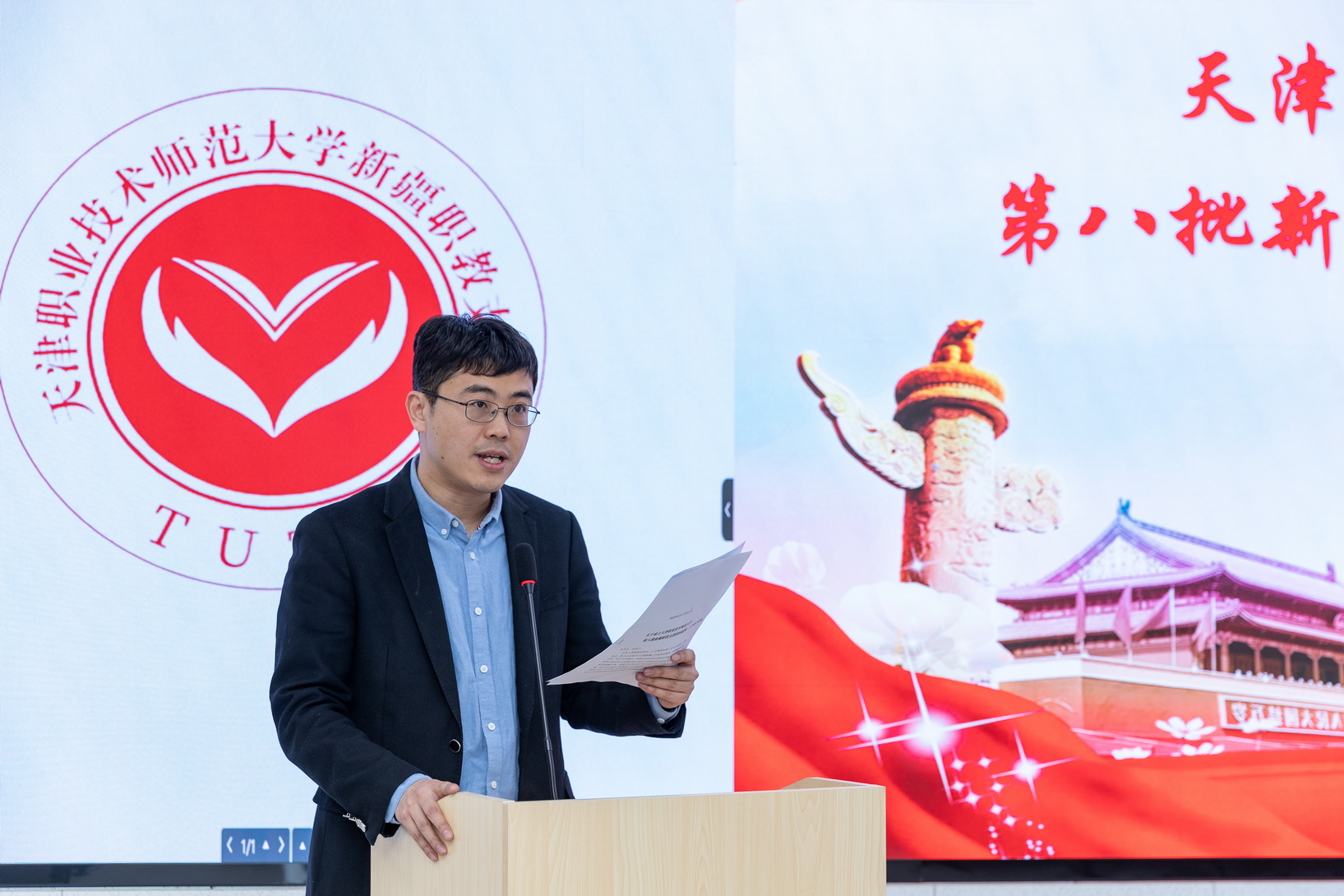 会上,教务处副处少周朝宣读了《对于诞生天津劳动技能师范年夜教第8批新疆职教收教团的关照》,党委构造部副部少下楠、校团委文告刘晶别离揭橥诞生第8批新疆职教收教团姑且党收部战姑且团收部。