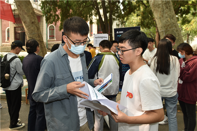 原次聘请举动正在北北校区共时举行,用人单元经由过程散发宣扬册、扫描两维码等多种体例背同砚们细致引见公司概略、企业文明、利益报酬、人材需要等基础环境。相干教院卖力人也到会取用人单元停止洽商交