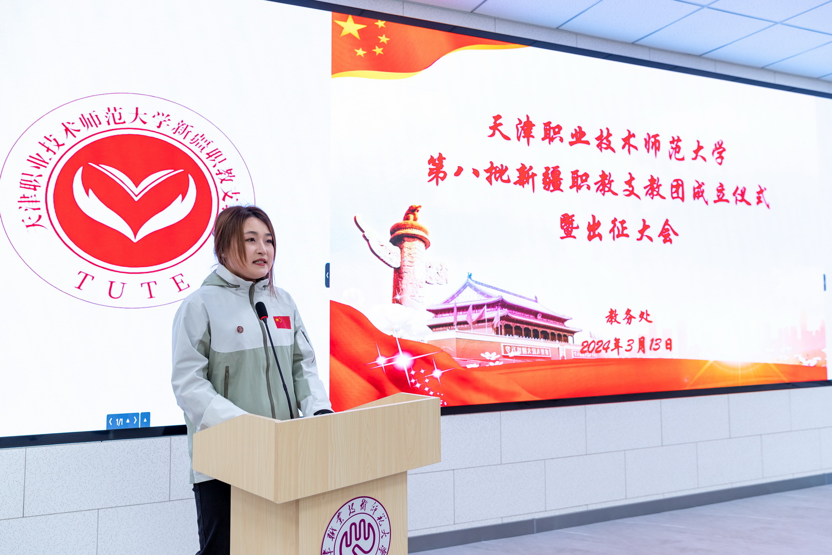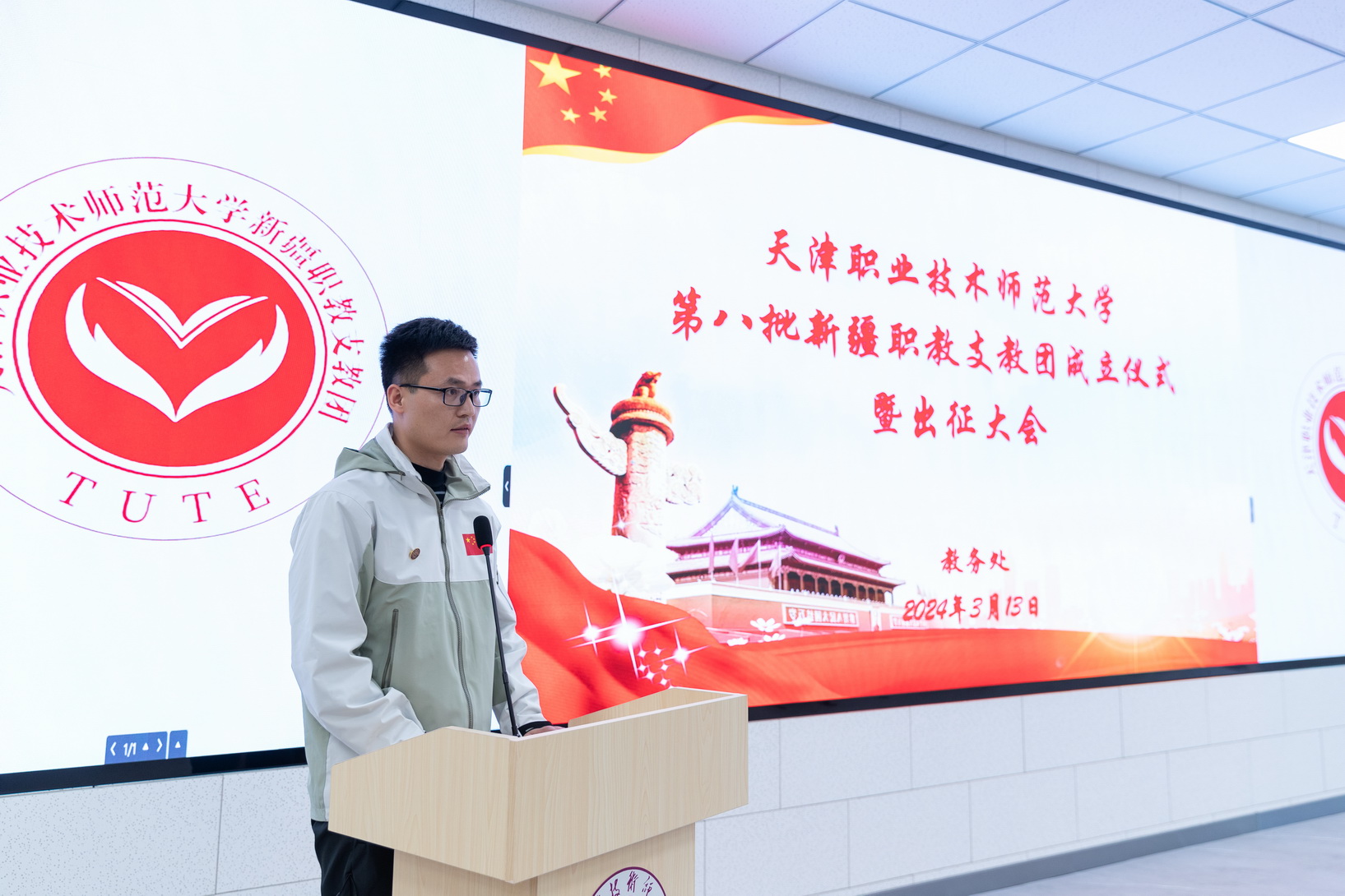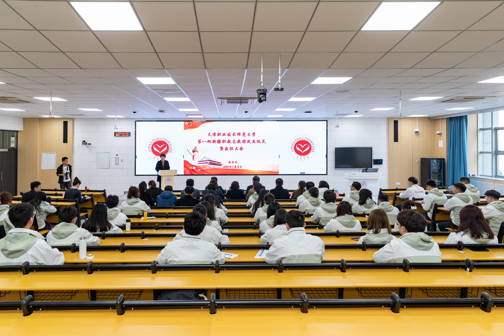 会上,教务处副处少周朝宣读了《对于诞生天津劳动技能师范年夜教第8批新疆职教收教团的关照》,党委构造部副部少下楠、校团委文告刘晶别离揭橥诞生第8批新疆职教收教团姑且党收部战姑且团收部。